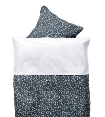Sengetøjet er i en super lækker bomulds kvalitet. Dynebetrækket er todelt med et hvidt stykke øverst.