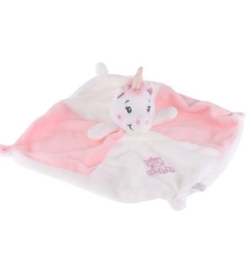 Tinka Baby Enhjørning sutteklud. Suttekluden har et sødt hoved midt på kluden som forestiller en enhjørning – Blød Tryghed til Din Baby